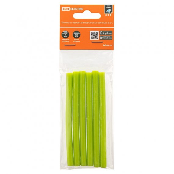 Клеевые стержни универсальные зеленые, 7 мм x 100 мм, 6 шт, "Алмаз" TDM