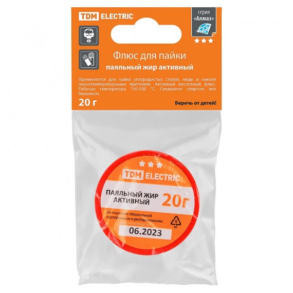 Флюс для пайки, паяльный жир активный, 20 г, банка, инд. упаковка, серия "Алмаз" TDM