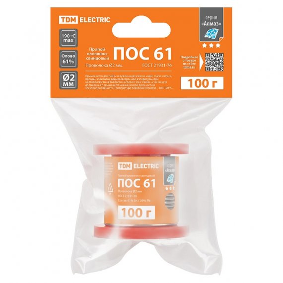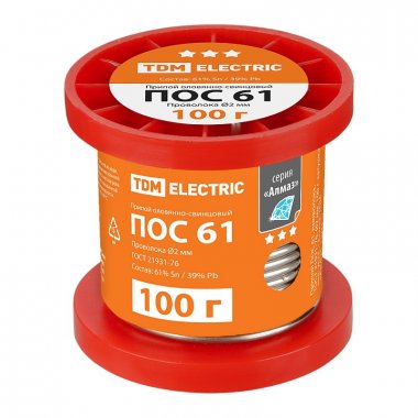 Tdm SQ1025-1807 Припой ПОС 61, проволока, ГОСТ 21931-76, ?2 мм, 100 г