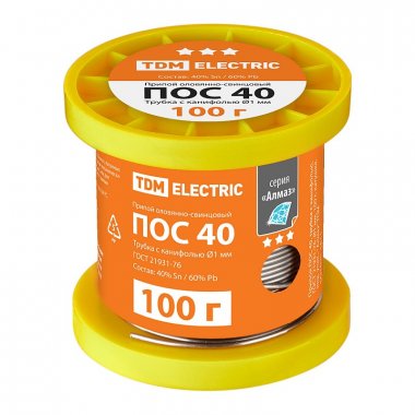 Tdm SQ1025-1811 Припой ПОС 40, трубка с канифолью, ГОСТ 21931-76, ?1 мм, 100 г