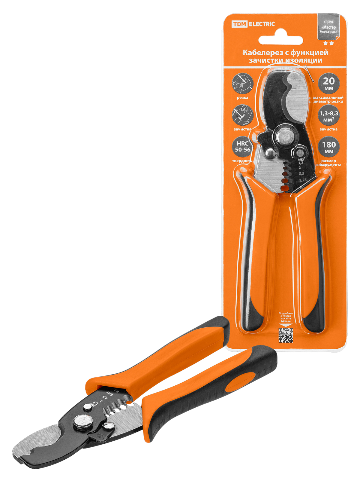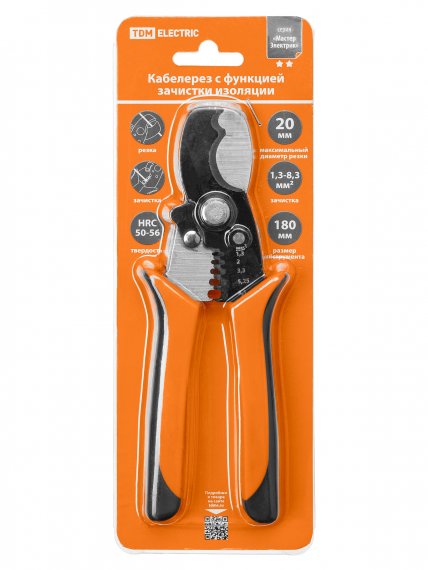 Кабелерез с функцией зачистки изоляции, 180 мм, усиленный, Al/Cu 35/10 мм², "МастерЭлектрик" TDM