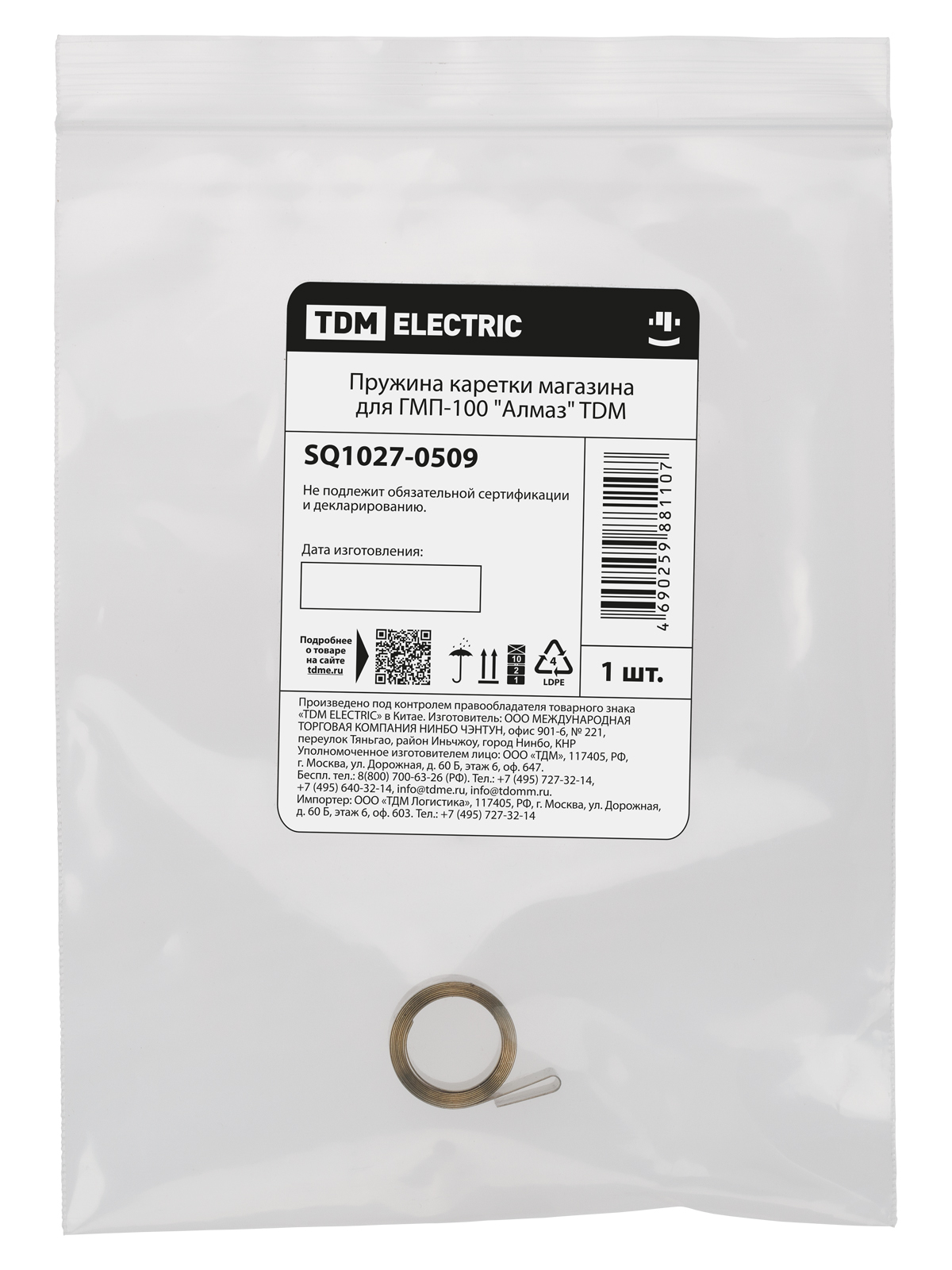 Tdm SQ1027-0509 Пружина каретки магазина для ГМП-100 "Алмаз"