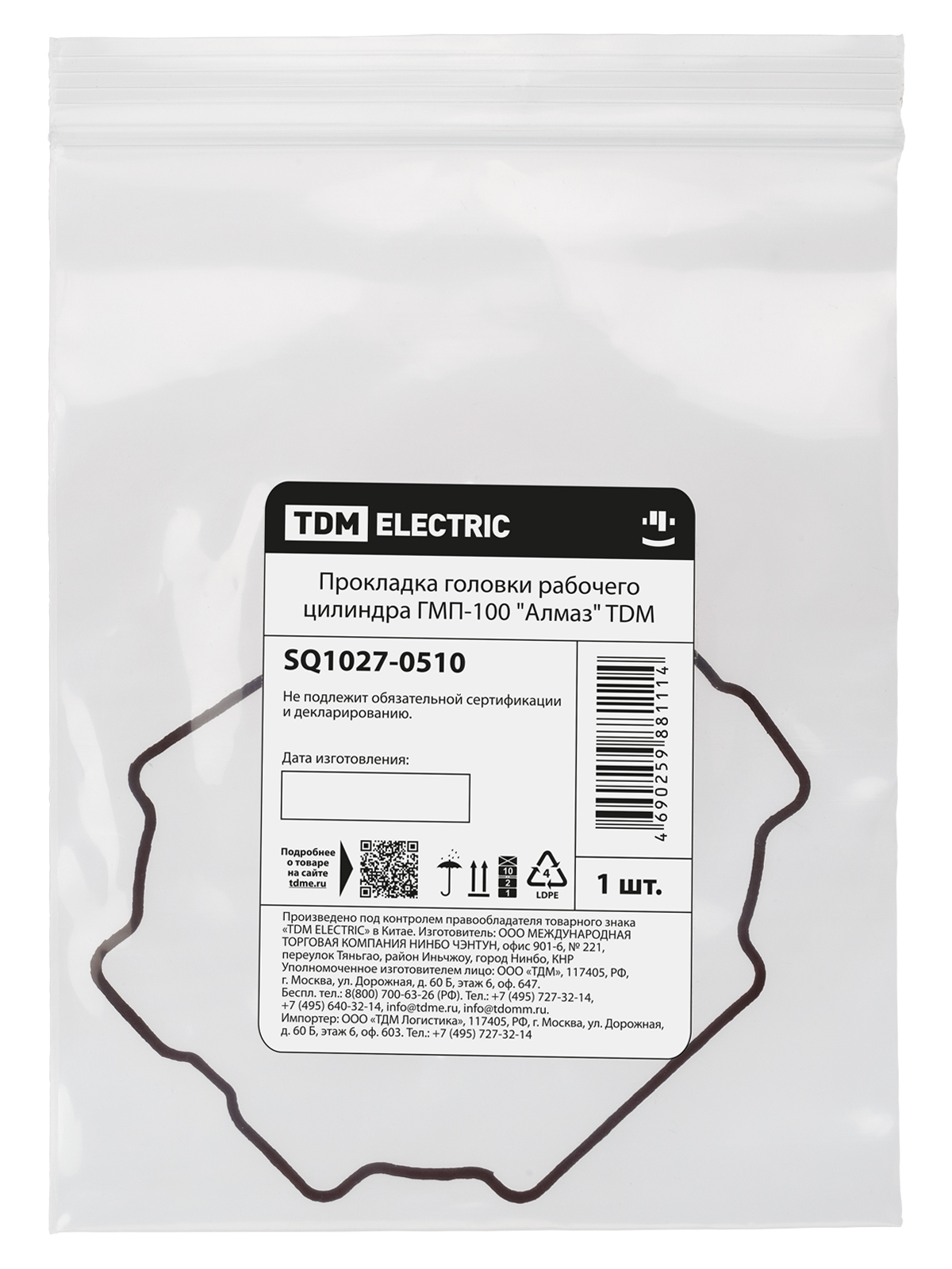 Tdm SQ1027-0510 Прокладка головки рабочего цилиндра ГМП-100 "Алмаз"