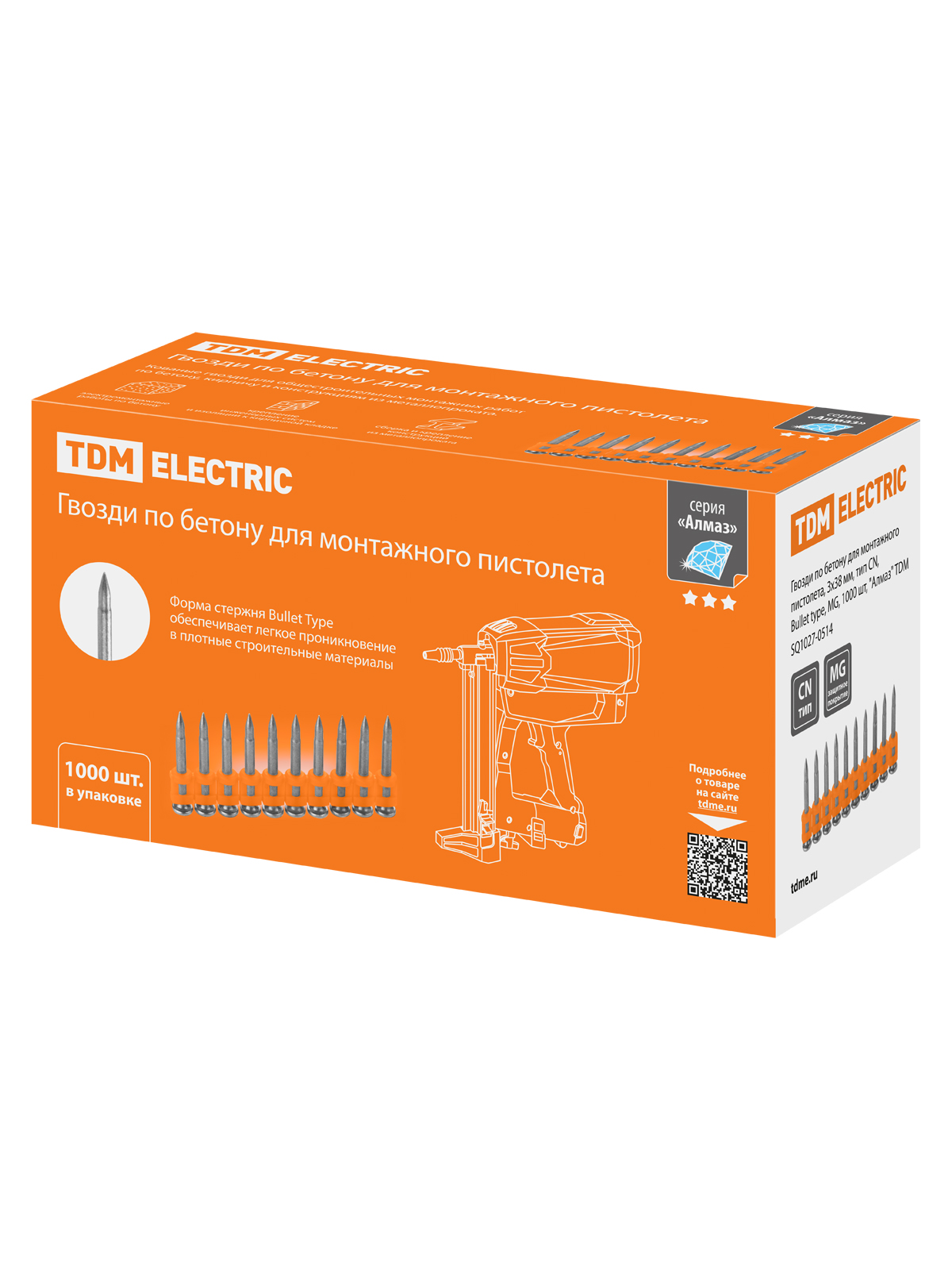 Tdm SQ1027-0514 Гвозди по бетону для монтажного пистолета, 3х38 мм, тип CN, Bullet type