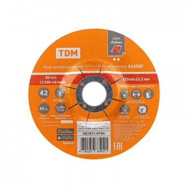 Tdm SQ1071-0704 Круг шлифовальный, зачистной по металлу, 125х6х22,2 мм