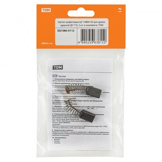 Tdm SQ1086-0112 Щетки графитовые ЩГ-10860102 для дрели ударной ДУ-710