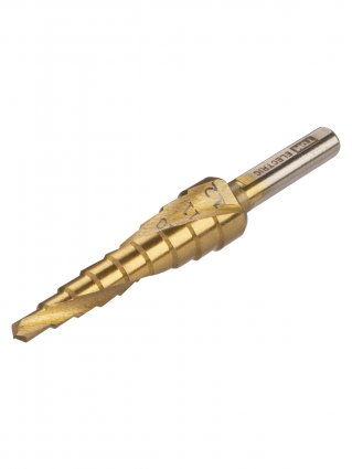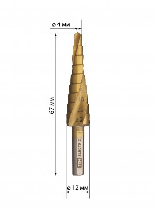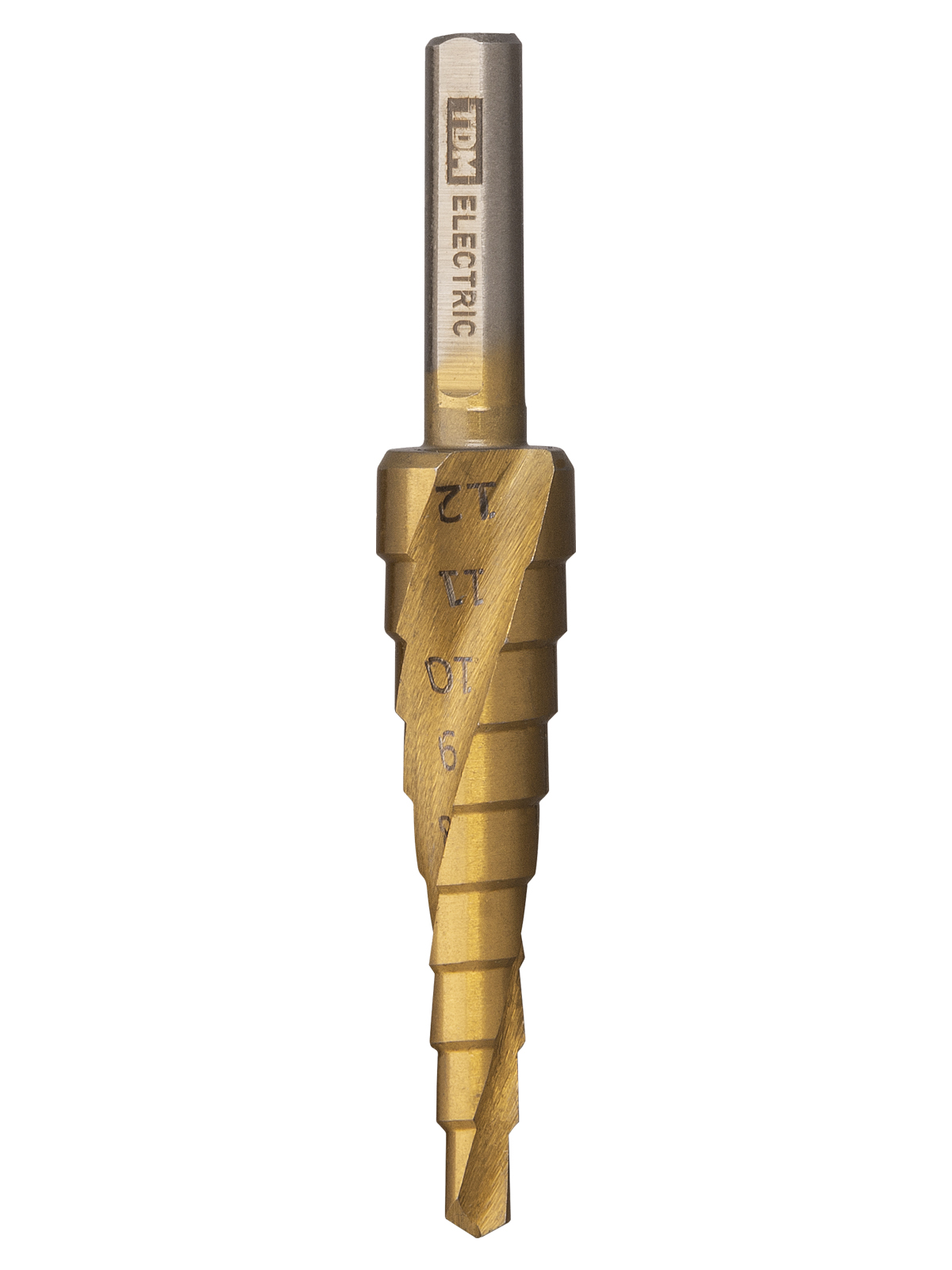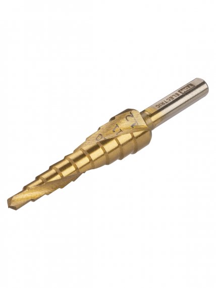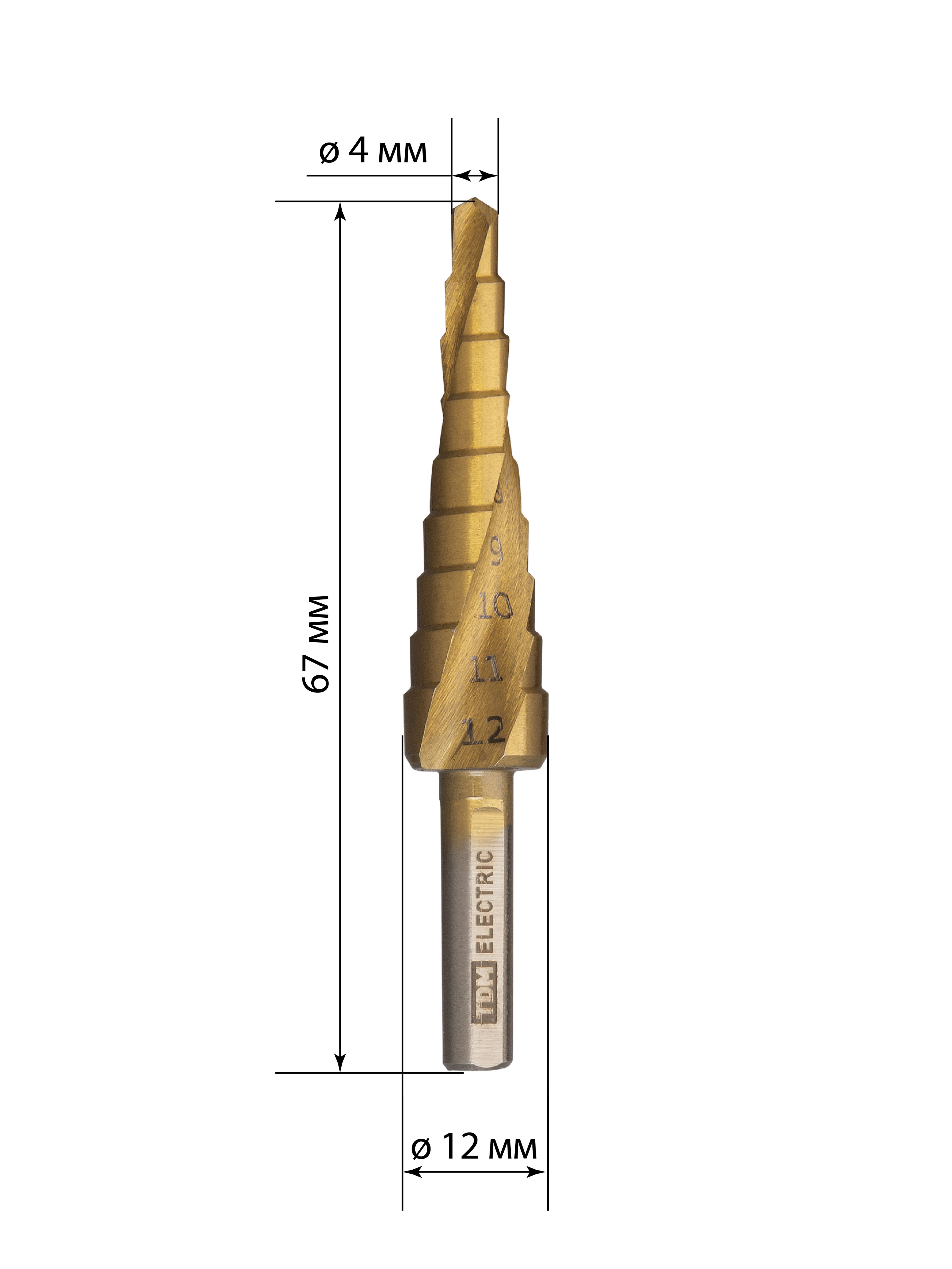 Сверло по металлу ступенчатое, 4-12 мм, 9 ступеней, нитрид., HSS, цилиндр. хв., "Рубин" TDM