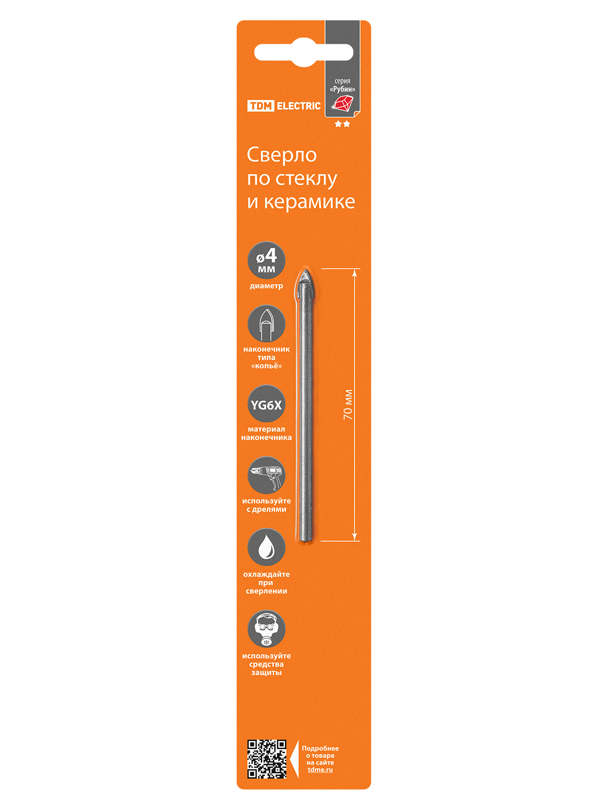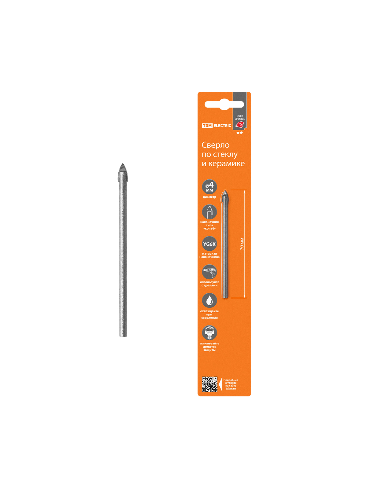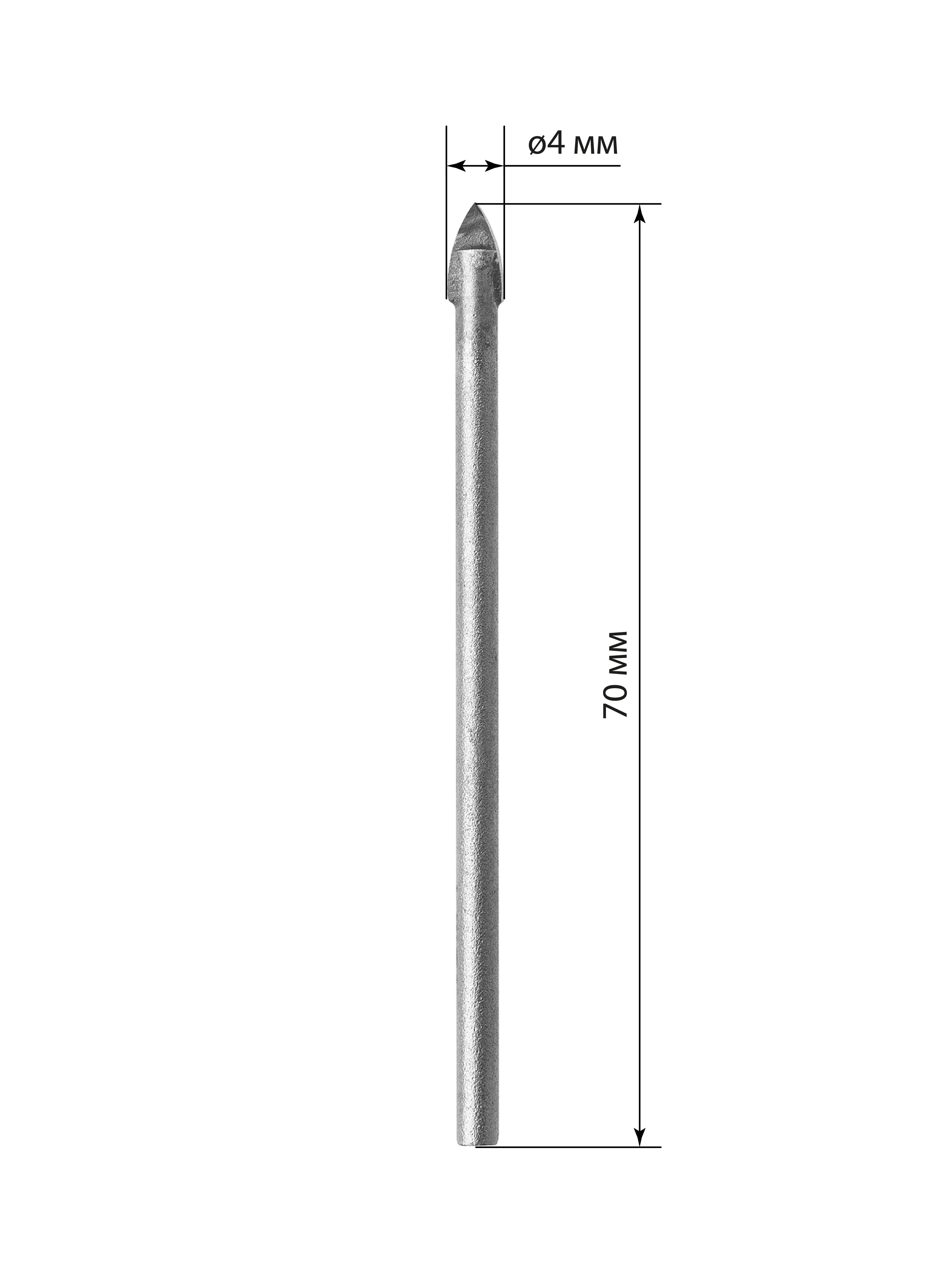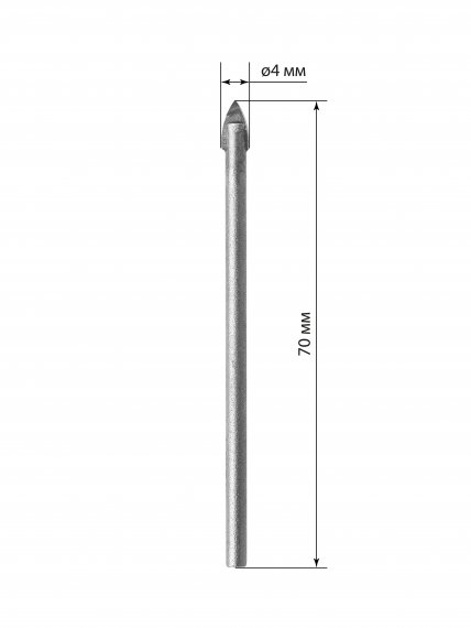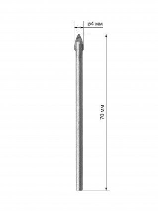 Сверло по стеклу и керамике 4×70 мм, 2 реж., лезвия, цилиндр. хв., блистер 1 шт, "Рубин" TDM