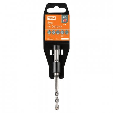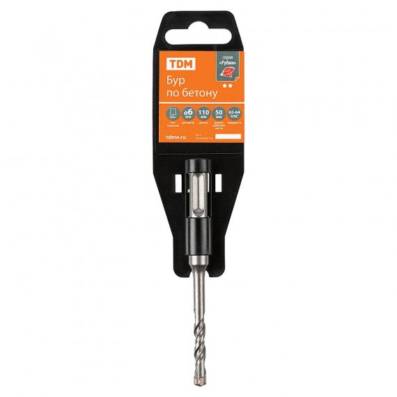 Бур по бетону, 6?110?50 мм, SDS-Plus, 4 резца, пластиковый держатель, 1 шт, "Рубин" TDM