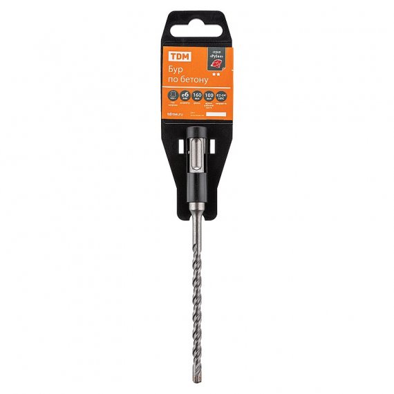 Бур по бетону, 6?160?100 мм, SDS-Plus, 4 резца, пластиковый держатель, 1 шт, "Рубин" TDM