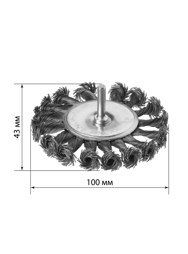 Щетка для дрели "плоская", 100 мм, плетеные пучки стальной проволоки d 0,5 мм, "Рубин", TDM