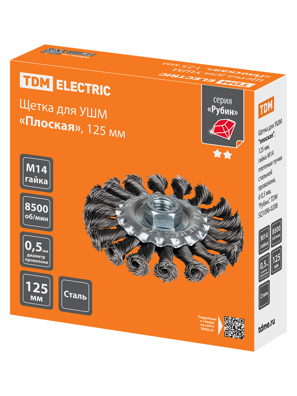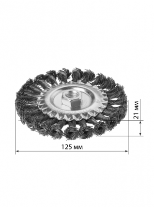Щетка для УШМ "плоская", 125 мм, гайка М14, плетеные пучки стальной проволоки d 0,5 мм, "Рубин", TDM