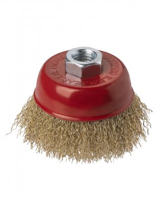 Щетка для УШМ "чашка", 75 мм, гайка М14, латунированная витая проволока d 0,3 мм, "Рубин", TDM