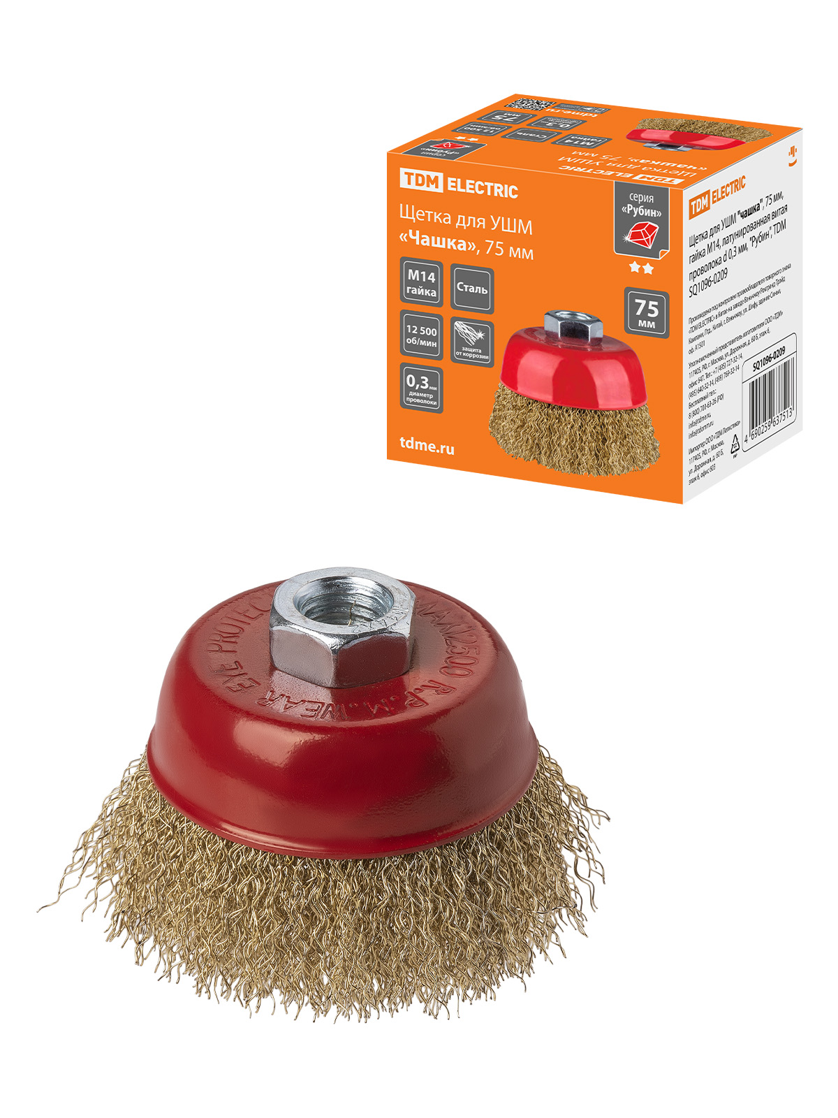 Tdm SQ1096-0209 Щетка для УШМ "чашка", 75 мм, гайка М14