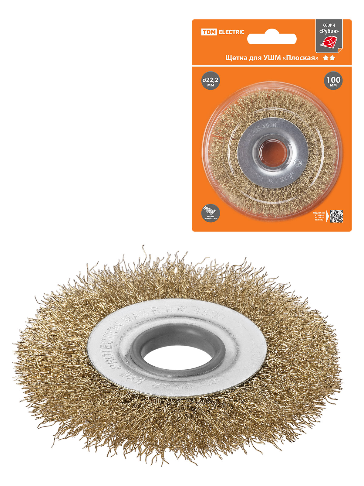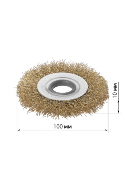 Щетка для УШМ "плоская", 100 мм, посадка d 22,2 мм, латунир. витая проволока d 0,3 мм, "Рубин", TDM