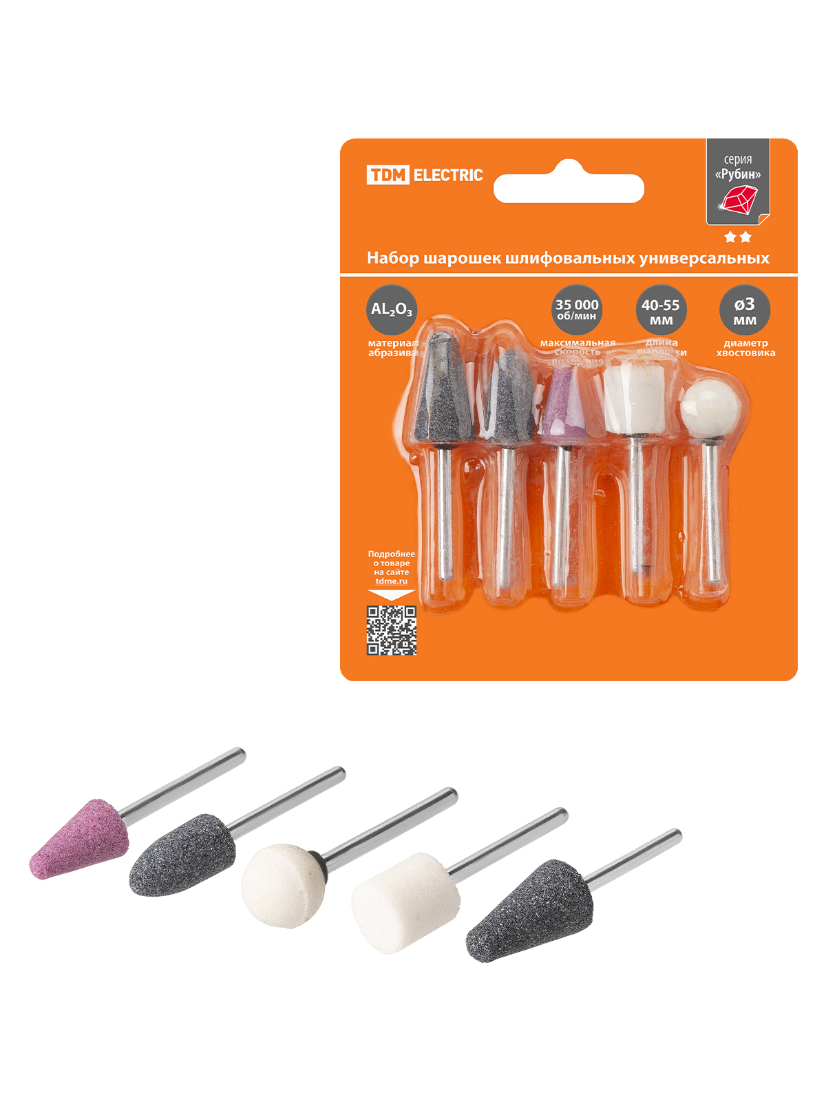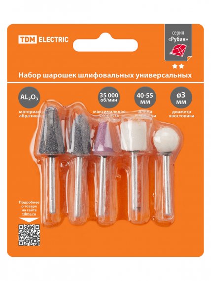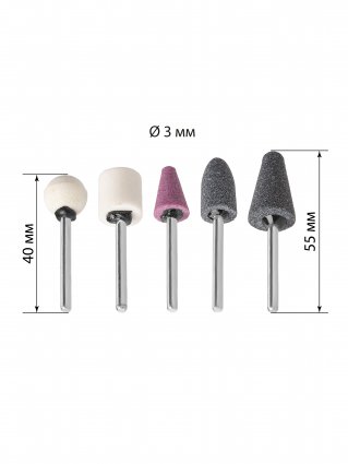 Набор мини-шарошек шлифовальных, абразивных, Ø 3 мм, L 40-55 мм, универсальные, 5 шт, "Рубин" TDM