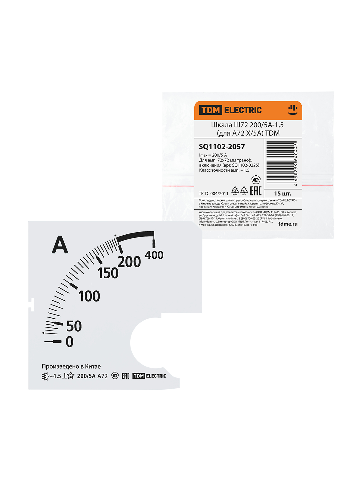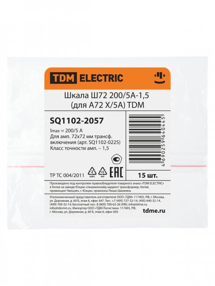 Tdm SQ1102-2057 Шкала Ш72 200/5А-1,5 (для А72 Х/5А)