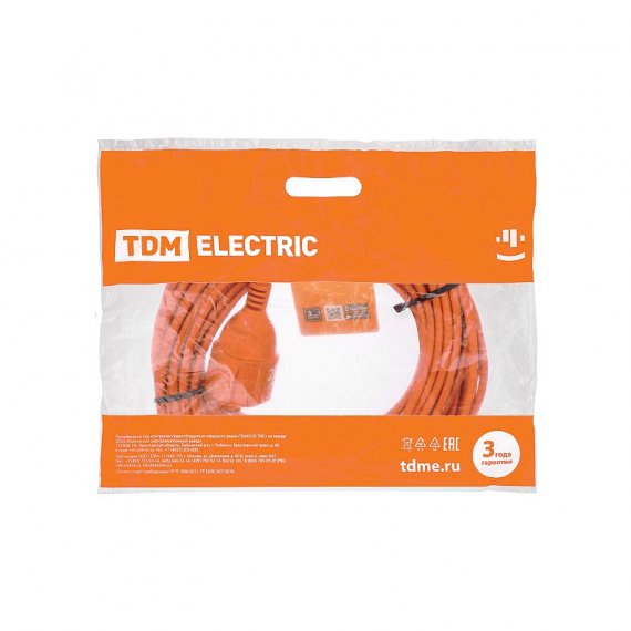 Tdm SQ1301-0621 Удлинитель-шнур силовой УШз16 (штепс. гнездо, 20м ПВС 3х1,5)