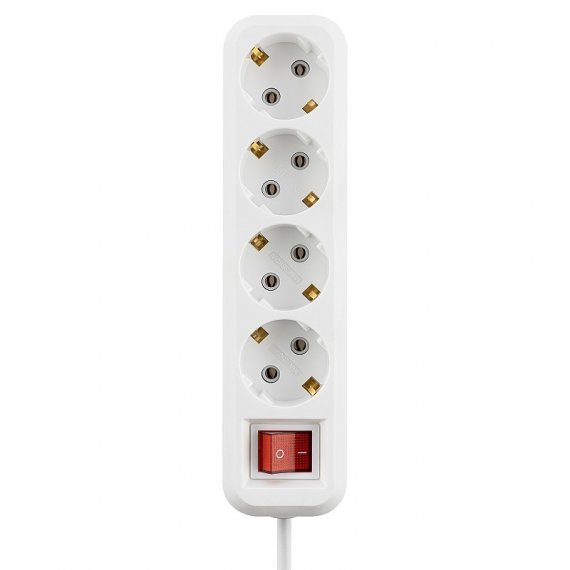 Удлинитель 4 гнезда, 1,5 метра, с/з, выкл., 10 А, 2300 Вт, белый, НАРОДНЫЙ