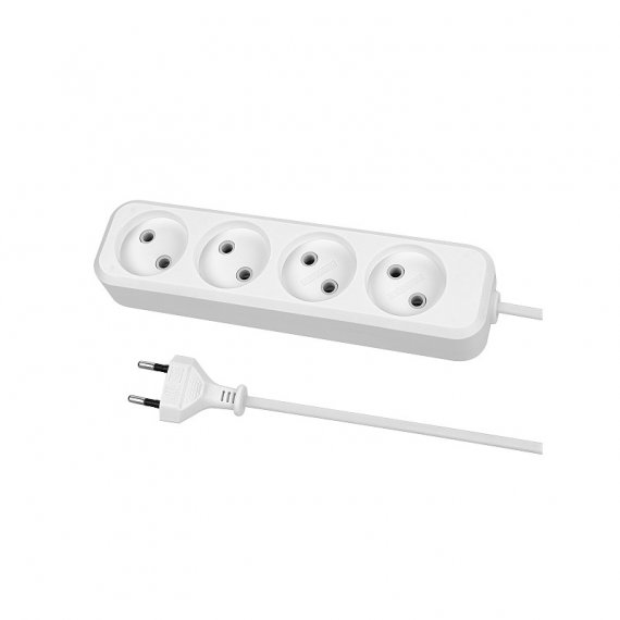 Удлинитель 4 гнезда, 5 метров, б/з, 6 А, 1380 Вт, белый, НАРОДНЫЙ