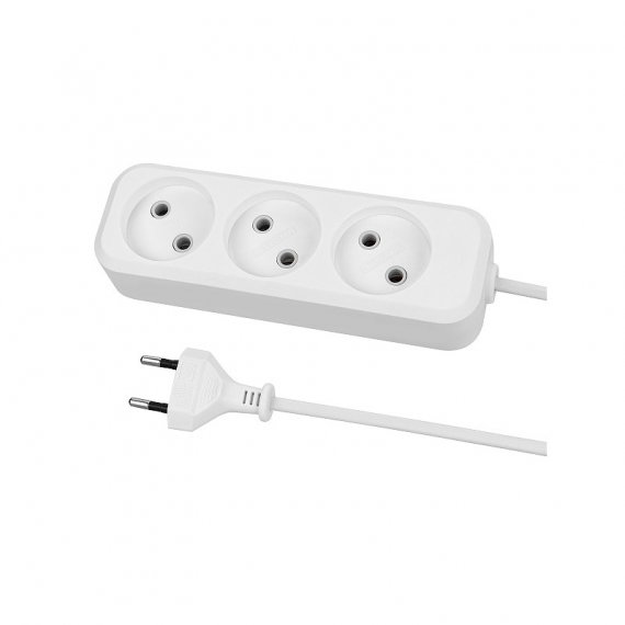 Удлинитель 3 гнезда, 1,5 метра, б/з, 10 А, 2300 Вт, белый, НАРОДНЫЙ