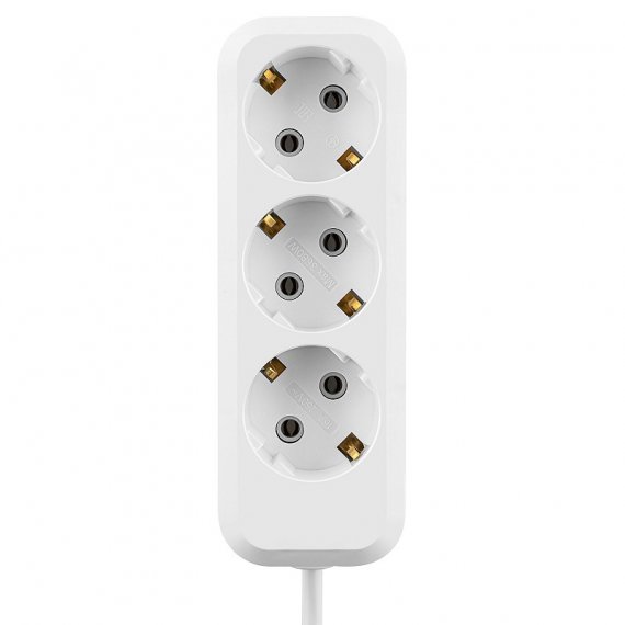 Удлинитель 3 гнезда, 5 метров, с/з, 16 А, 3680 Вт, белый, НАРОДНЫЙ