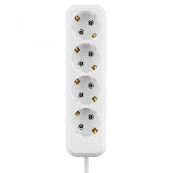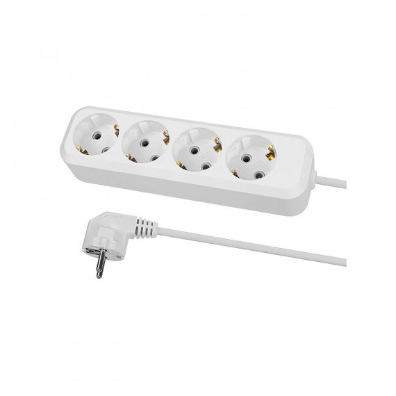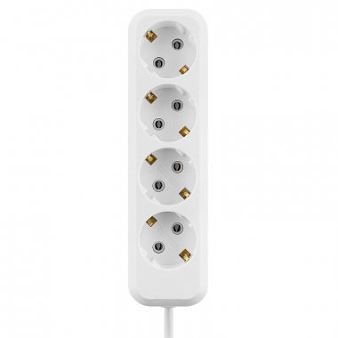 Удлинитель 4 гнезда, 5 метров, с/з, 16 А, 3680 Вт, белый, НАРОДНЫЙ