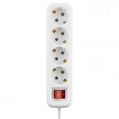 Удлинитель 4 гнезда, 10 метров, с/з, выкл., 16 А, 3680 Вт, белый, НАРОДНЫЙ