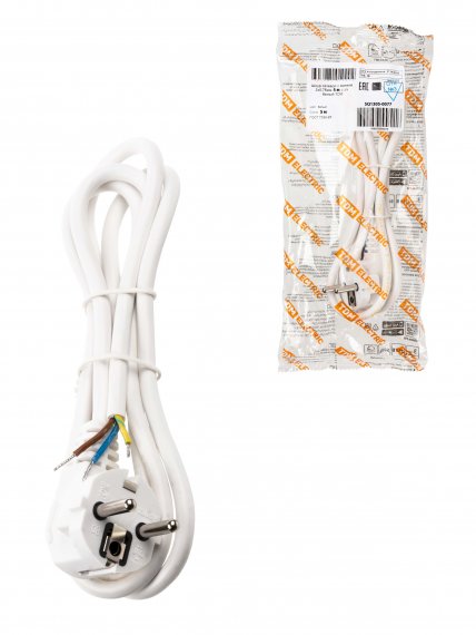 Шнур сетевой с вилкой ПВС 3x0,75мм2 5м с/з белый TDM
