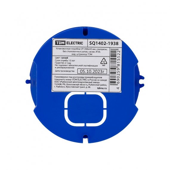 Установочная коробка СП D68х42 мм от TDM - это надежное решение для скрытого монтажа. Она выполнена в синем цвете и обладает степенью защиты IP20. Продукт поставляется с индивидуальным штрихкодом и гарантией на 1 год.