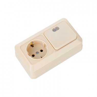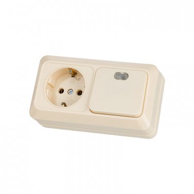 Блок комбинированный выкл. 1-кл. с/п 10А + розетка 2П+З 16А 250В БКВР IP20 сл. кость "Ладога" TDM