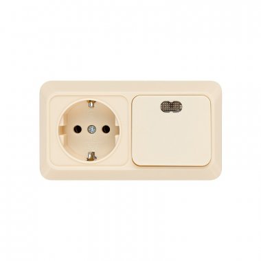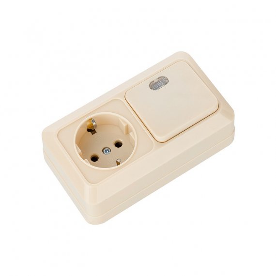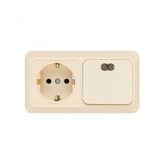 Блок комбинированный выключатель 1-кл. с подсветкой 10А + розетка 2П+З 16А 250В БКВР IP20 от TDM в цвете слоновая кость - идеальное решение для подключения электроприборов и управления освещением. Модель оснащена заземлением, имеет накладной способ монтажа и степень защиты IP20.