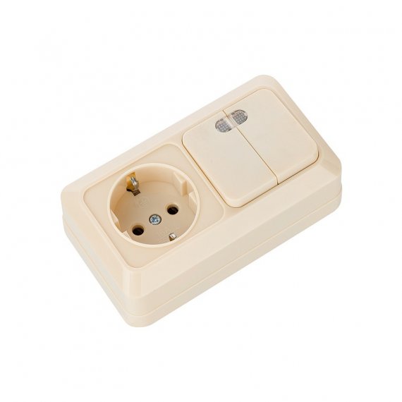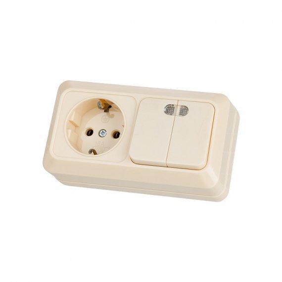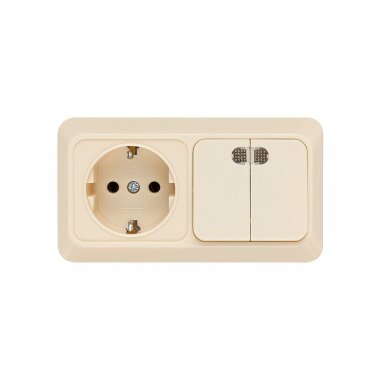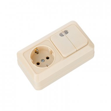 Блок комбинированный выкл. 2-кл. с/п 10А + розетка 2П+З 16А 250В БКВР IP20 сл. кость "Ладога" TDM