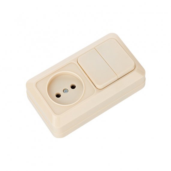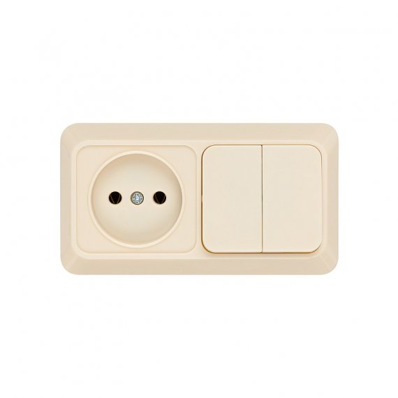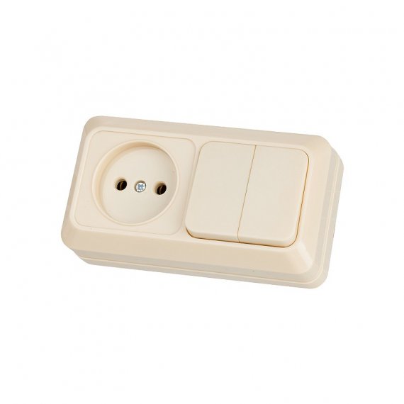 Блок комбинированный выкл. 2-кл. 10А + розетка 2П 10А 250В БКВР IP20 сл. кость "Ладога" TDM