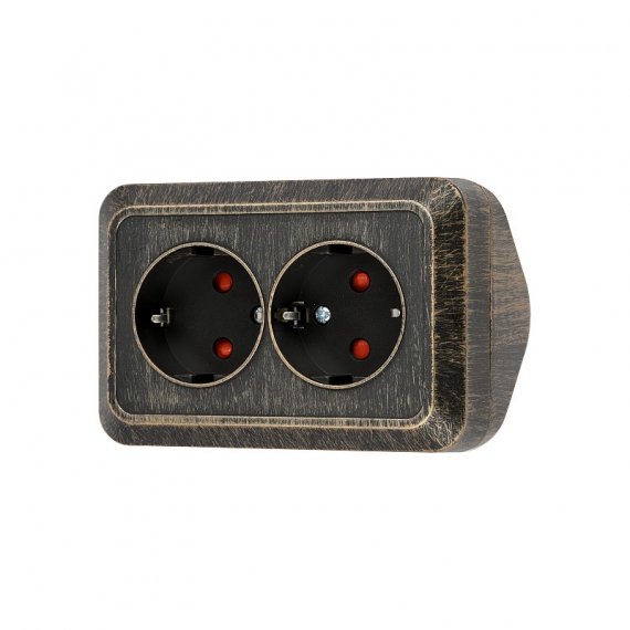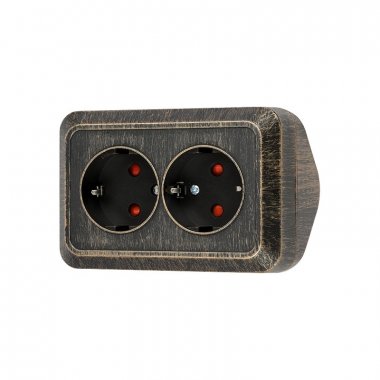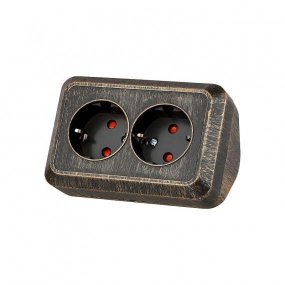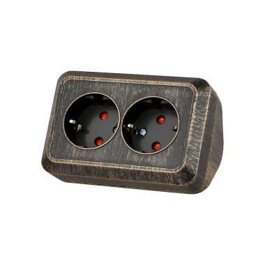 Розетка угловая двойная 2П+3 открытой установки с з/ш IP20 250В 16А бронза "Ладога" TDM