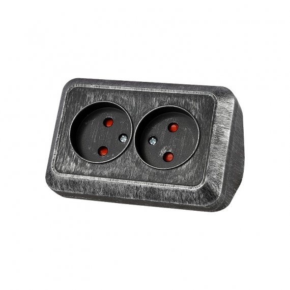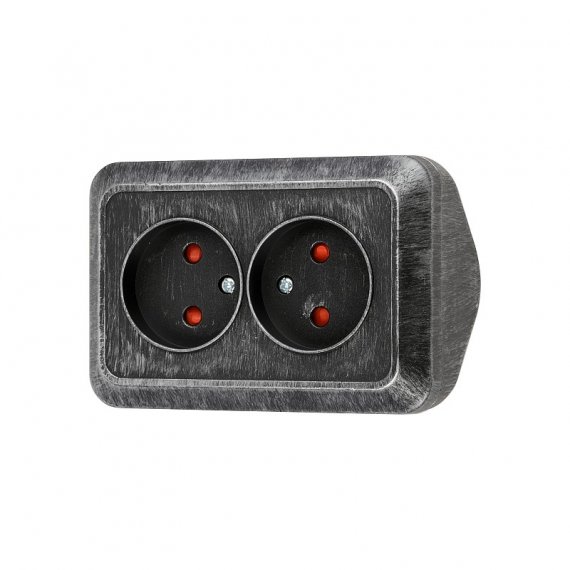 Розетка угловая двойная 2П открытой установки с з/ш IP20 250В 10А серебро "Ладога" TDM