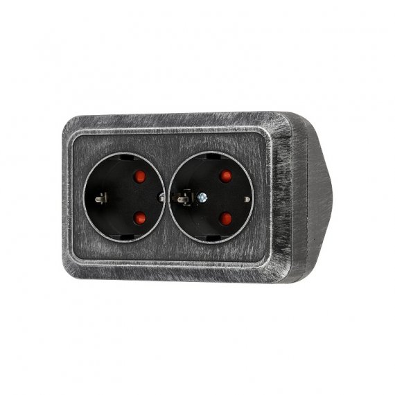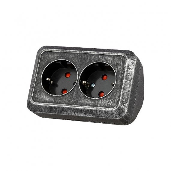Розетка угловая двойная 2П+3 открытой установки с з/ш IP20 250В 16А серебро "Ладога" TDM