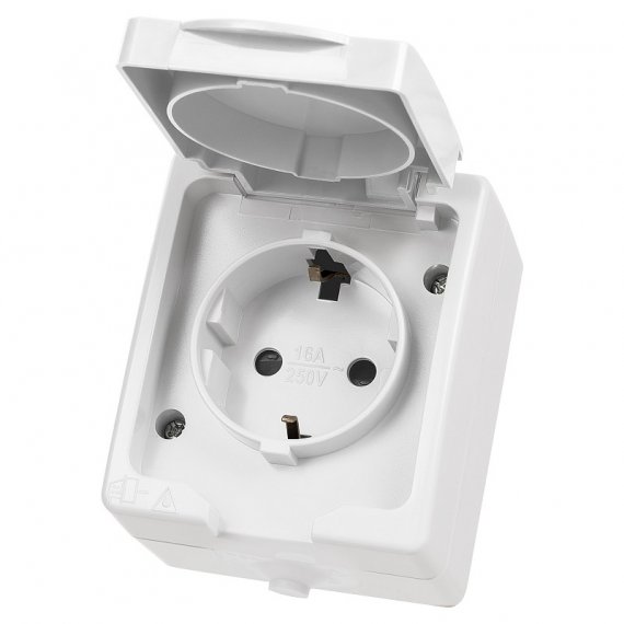Розетка 2П+З открытой установки IP54 16А белая "Вуокса" TDM