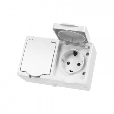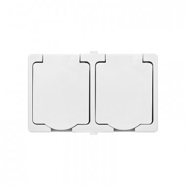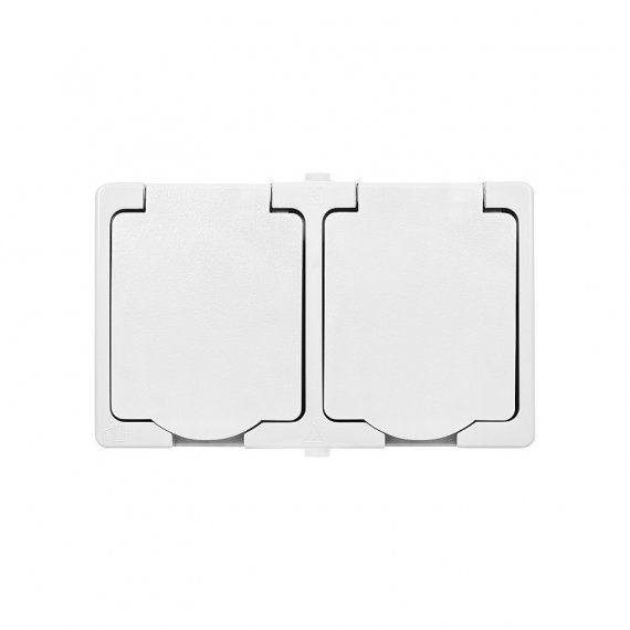 Розетка двойная 2П+З (горизонтальная) открытой установки IP54 16А белая "Вуокса" TDM