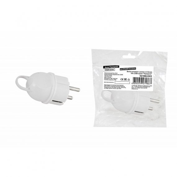 Tdm SQ1806-0405 Вилка угловая с ушком с/з белая 16А 250В серии "Народная"