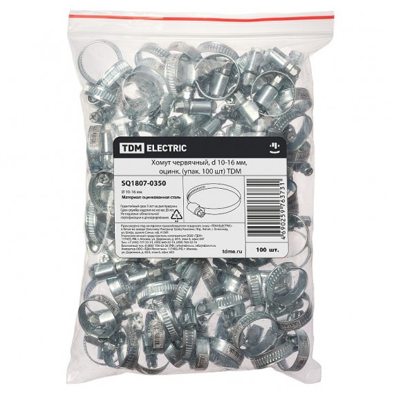 Tdm SQ1807-0350 Хомут червячный, d 10-16 мм, оцинк