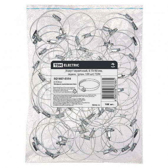 Tdm SQ1807-0354 Хомут червячный, d 70-90 мм, оцинк