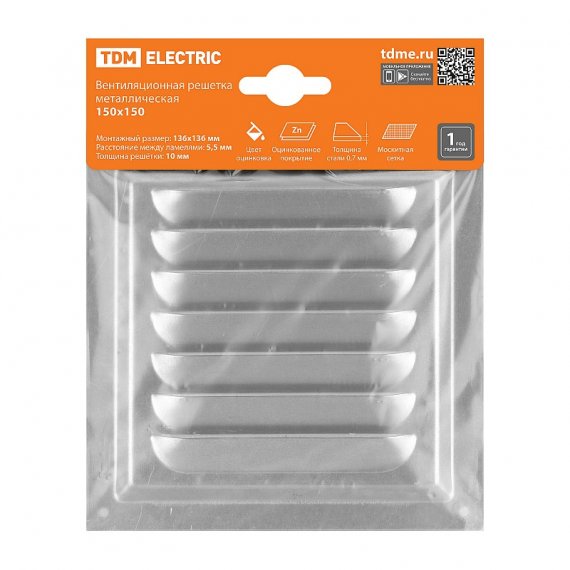 Решетка металл. 150х150, с оцинкованным покрытием, TDM