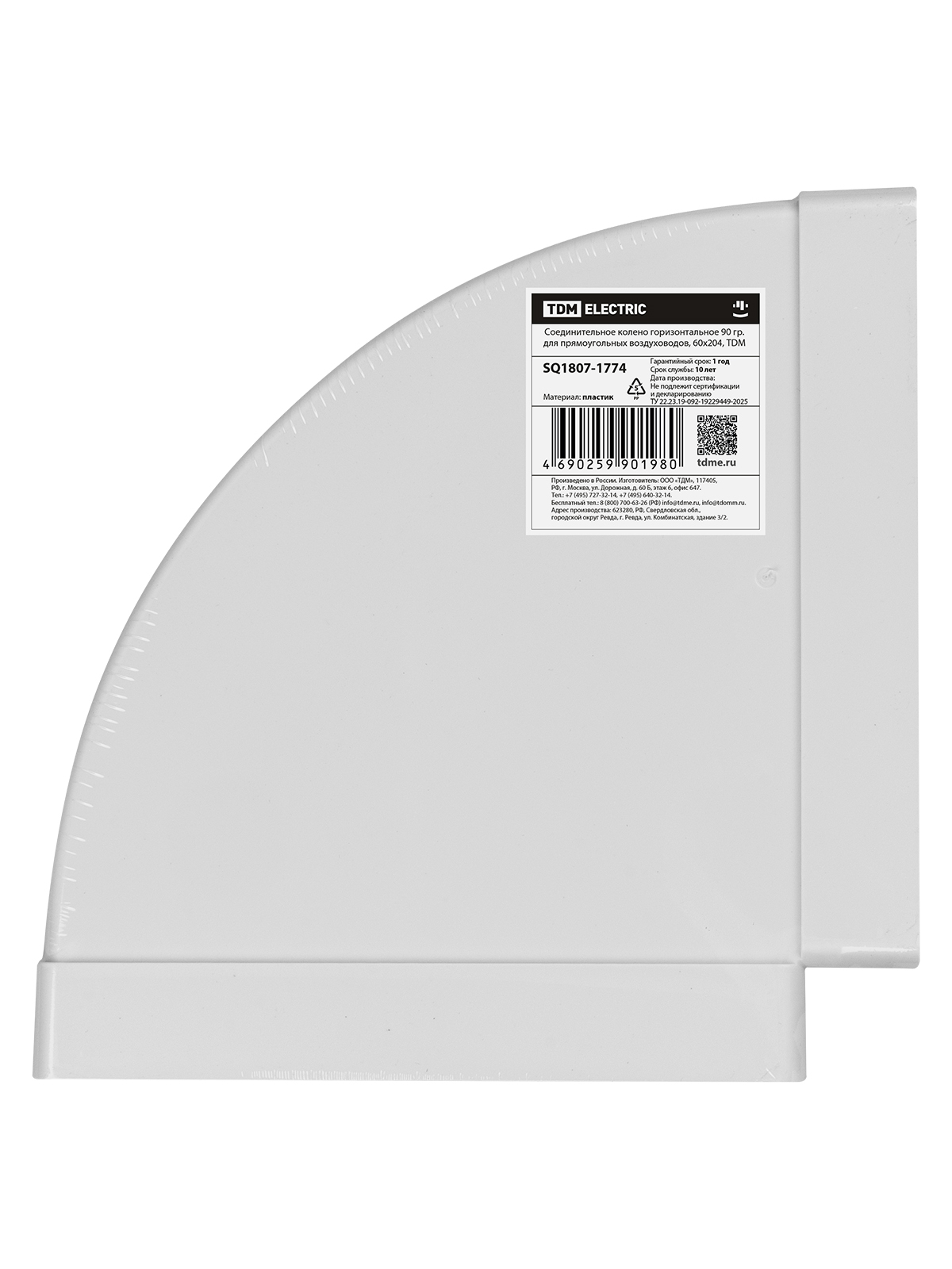 Tdm SQ1807-1774 Соединительное колено горизонтальное 90 гр. для прямоугольных воздуховодов, 60х204