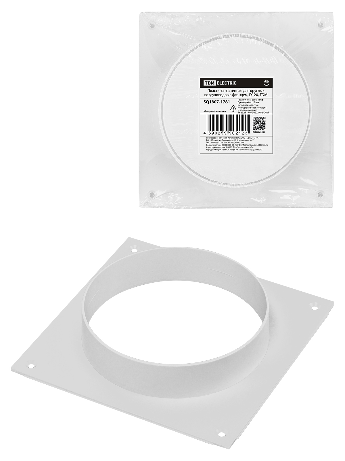 Tdm SQ1807-1781 Пластина настенная для круглых воздуховодов с фланцем, D120