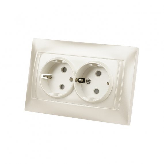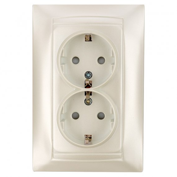 Розетка двойная 2П+З 16А 250В с защ. шт. перламутр "Лама" TDM