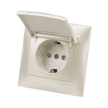 Розетка 2П+З 16А 250В IP44 с защ. шт. с крышкой перламутр "Лама" TDM