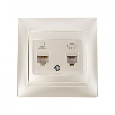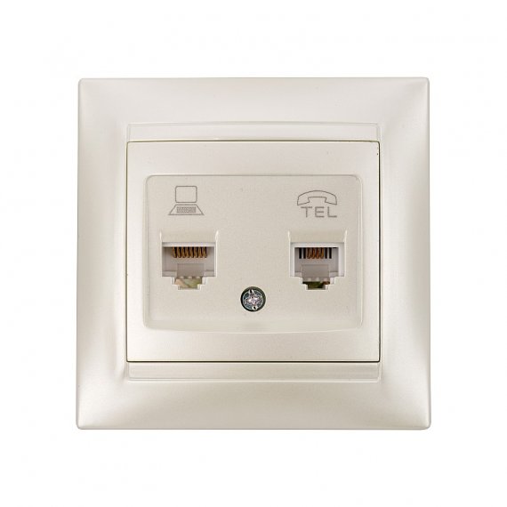 Розетка телефонная RJ11 + компьютерная RJ45 перламутр "Лама" TDM