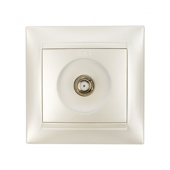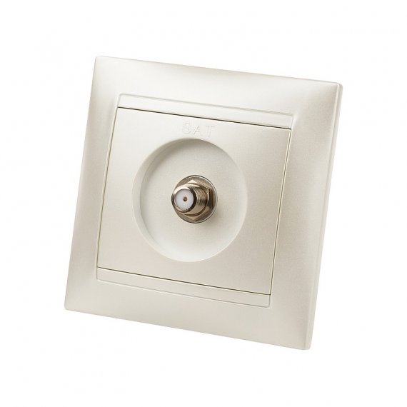 Розетка SAT от TDM с F-разъемом предназначена для подключения спутникового телевидения. Корпус розетки выполнен в цвете перламутр. Имеет встроенный монтаж. Материал лицевых накладок - поликарбонат, контакты - высокоупругая фосфористая бронза.