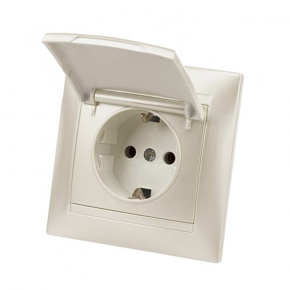 Розетка 2П+З 16А 250В IP44 с крышкой перламутр "Лама" TDM